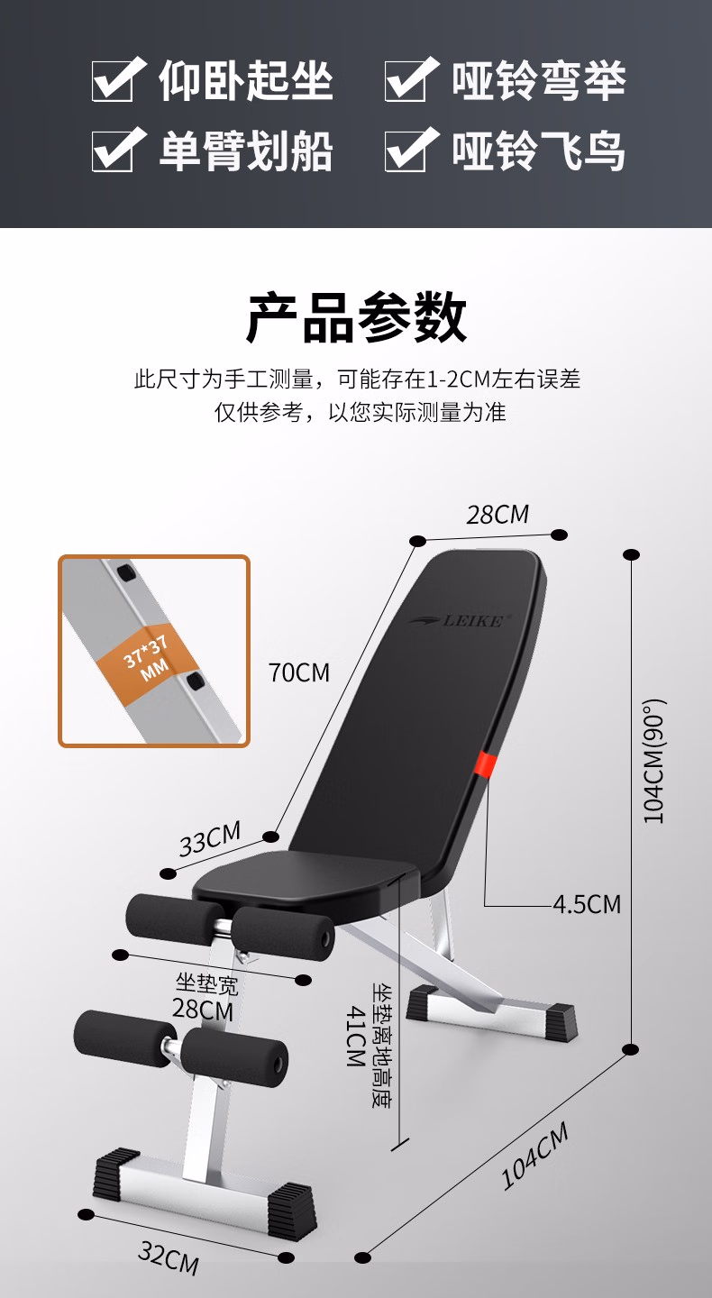 • 商品名称:雷克雷克简易哑铃凳多功能健腹凳仰卧起坐飞鸟卧推健身凳健身器材 GM5817